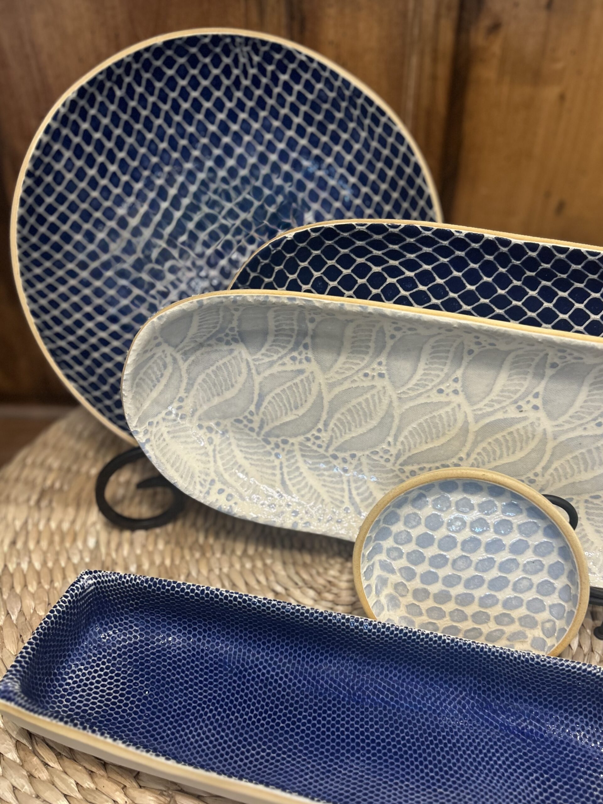 Pottery designed and hand crafted in New York to provide functional, high quality pottery for the home and kitchen. Each piece is hand painted through textiles and lace to produced one of a kind results.